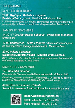 Uraufführung am 31. Oktober 2025 anlässlich des "Festival de l'ACMA Le Luth enchanté" im Le Salon, Genève. ► Link zum Festival